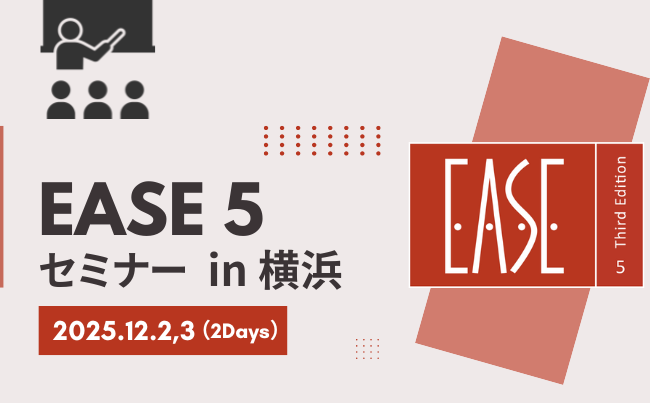 2023-12-02 EASE 4 オンデマンドセミナーを開講いたします EASE 4 オンデマンドセミナーを、開講いたします。 EASE 4 では初のビデオ視聴のみのセミナーで、期間は、2024年2月~4月の3ヶ月間で […]